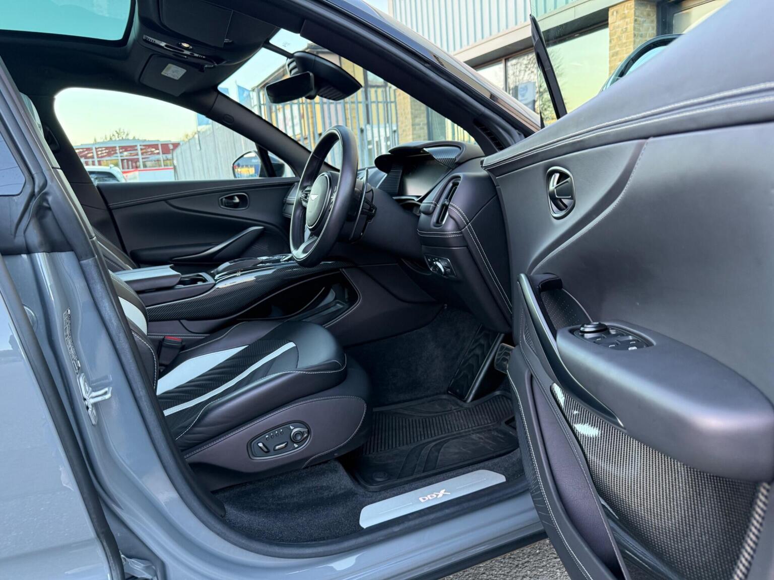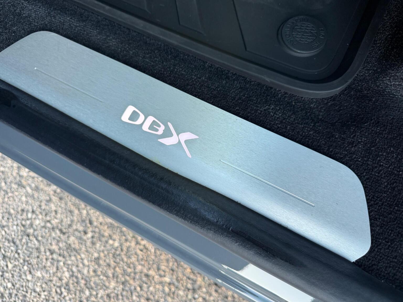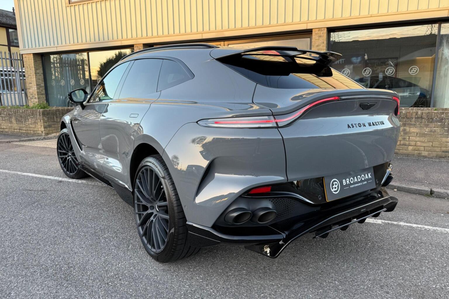 23in Alloy Wheels - Forged - Textured Black, Brake Calipers - Red, Tail Lights - Smoked, Front Grille - Gloss Black, Exterior Badging - Aston Martin Black Script and Wing Badging, Interior Jewellery Pack - Q - 2x2 Twill Carbon Fibre Trim with Dark Satin Chrome, Interior - Inspire Sport - Duotone, Leather Colour Palette - Metallic Black, Light Argento Secondary Leather, Power Tailgate - With Gesture Control, Seat Detailing - Stitch - Mirrored, Seating - Ventilated - Front and Rear, Privacy Glass, Aston Martin Tracking System, Trim Inlay - Gloss 2x2 Twill Carbon Fibre, Steering Wheel - Sport - Monotone Heated, Factory Paint Protection Film, Aston Martin Designer Key Set with Presentation Jewellery Case, Apple CarPlay, Extended Q Carbon Twill Interior Package, Q Carbon Twill Seat Backs, Illuminated Door Sill Logo’s, Carbon Rear Roof Spoiler, Sports Seats Plus with 16 Way Adjust and Memory, Perimeter Camera System - 360 View, AM Wings Logo Embroidered to Head Rests in Black Metallic, Adaptive Cruise Control, Driver Assistance Package, Aston Martin Premium Audio System, Panoramic Roof with Powered Sunblind, Full Leather Headlining in Metallic Black Semi Aniline Leather, Wings Quilting to Seats